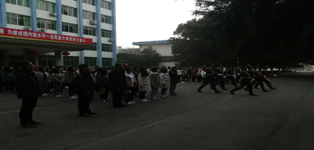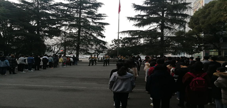 早上6:50分,升旗仪式开始。国旗班迈着铿锵整齐坚定的步伐护送鲜艳的五星红旗入场,伴随着雄壮激昂的国歌,五星红旗冉冉升起,全体师生向国旗行注目礼,高唱国歌。
