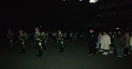 天色未明,寒风袭人,师生却热血沸腾,庄严有序排队。国旗护卫队的同学们迈着坚实有力的步伐,正步齐步稳稳地将国旗护送至升旗台上。全场一片肃静,向伴随着国歌冉冉升起的国旗行注目礼。