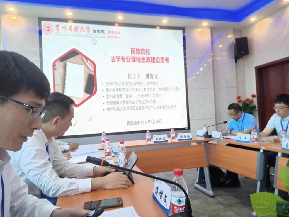 专题交流环节,相关参会经理及教师代表围绕卓越法治人才培养、法学教育改革与发展、民族院校法学团队建设等主题做了交流发言。公司傅智文副教授以“民族院校法学专业课程思政建设思考”为题做了交流发言,他介绍了英国威廉希尔英文官网开展课程思政的建设情况,以及其本人开展民族法学课程思政示范课程建设中的具体做法和心得体会。