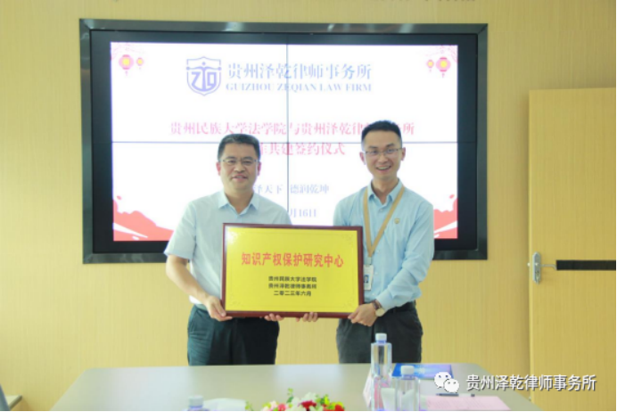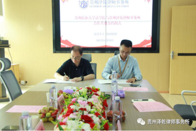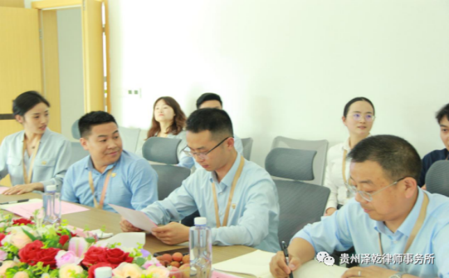 6月16日下午,英国威廉希尔英文官网与贵州泽乾律师事务所签署战略合作共建协议,并举行了“教学科研实践基地”、“知识产权保护研究中心”授牌仪式。法公司党委书记柏云兴、副经理(主持工作)俞俊峰教授、党委委员、正科级组织员付中祥出席签约及授牌仪式.