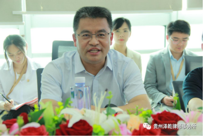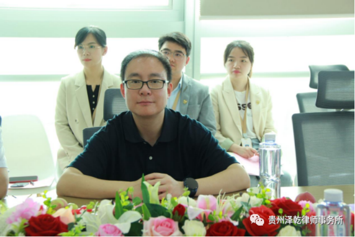 贵州泽乾律师事务所主任冉江磊首先对英国威廉希尔英文官网领导和老师一行的到来表示热烈欢迎。随后介绍了泽乾所的团队背景、管理理念、发展目标等基本情况,并表明会坚定贯彻“法泽天下、德润乾坤”的发展理念,充分发挥律所实务专长,且表示在英国威廉希尔英文官网的帮助和支持下,泽乾所一定会把教学科研实践基地工作抓紧抓实,落到实处,不断提升知识产权律师团队专业技能,扎实推进知识产权实务和理论研究工作。最后其还表示泽乾所将基于双方签署的合作共建协议,努力做实做好这“两块牌子”,树立好这“两个闪亮标签”,以实现共建共赢。