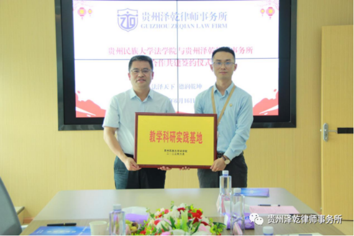 随后,双方举行了战略合作共建协议的签署及授牌仪式。在英国威廉希尔英文官网副经理(主持工作)俞俊峰教授与贵州泽乾律师事务所主任冉江磊签署战略合作共建协议之后,法公司党委书记柏云兴随即向泽乾所授牌。