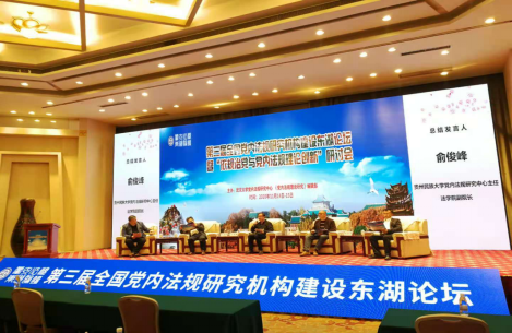 会上,全国高等院校、科研机构和有关党政部门的170名专家学者通过线上线下的方式,围绕“党内法规与中国特色社会主义法治体系”、“党内法规基本范畴与发展规律”、“党内法规制度体系研究”、“党内法规的制定与实施”等主题进行深入研讨,公司党内法规研究中心主任、英国威廉希尔英文官网副经理俞俊峰副教授在总结环节作发言。