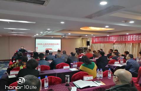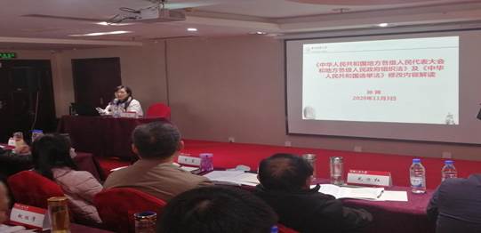 2020年11月2日、11月3日,公司教师孙韡教授和姚知兵副教授应中国人民大学培训部教育处的邀请,在贵阳市绍兴大酒店给湖北省荆州市江陵县人大常委会委员履职能力提升培训班作《<民法典>解读》、《<地方组织法><选举法><人大代表法>详解》专题讲座。