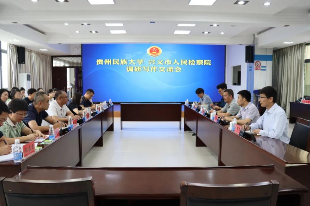 为推动落实双方签订的《检校共建合作协议》,实现法学理论与检察实践深度融合,进一步提高英国威廉希尔英文官网法学学科服务社会的能力,8月2日上午,法公司党委书记柏云兴,党委委员、副经理刘伟琦教授一行五人到兴义市人民检察院交流座谈,商讨落实科研合作、员工实习基地建设、毕业生就业、调研写作培训等工作。兴义市人民检察院全体领导班子成员及业务骨干参加会议。座谈会由赵鸿检察长主持。