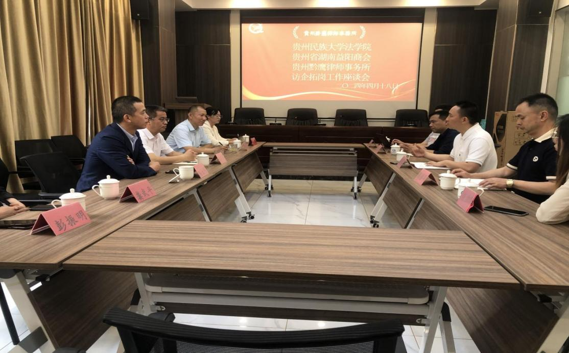 为贯彻落实《教育部办公厅关于开展2024届高校毕业生春季促就业攻坚行动的通知》(教就业厅函〔2024〕10号)精神,抢抓春季开学后促就业工作关键期,全力促进高校毕业生高质量充分就业。2024年4月18日上午9:00,法公司党委书记柏云兴带队到贵州黔鹰律师事务所开展访企拓岗交流活动。英国威廉希尔英文官网教师胡卫东、辅导员刘飞越,贵州黔鹰律师事务所宋军主任、陈德平书记、刘爱军律师、陈建林律师、殷胜勤律师等参加座谈。
