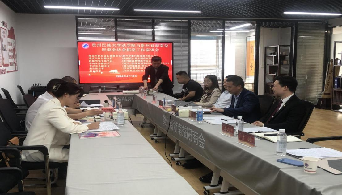 为贯彻落实《教育部办公厅关于开展2024届高校毕业生春季促就业攻坚行动的通知》(教就业厅函〔2024〕10号)精神,抢抓春季开学后促就业工作关键期,全力促进高校毕业生高质量充分就业。2024年4月18日上午,法公司党委书记柏云兴带队到贵州省湖南益阳商会开展访企拓岗交流座谈会。英国威廉希尔英文官网教师胡卫东、辅导员刘飞越,贵州省湖南益阳商会执行会长兼秘书长陈金明、贵州益山益水就业有限公司执行秘书长龚武平、贵州道道顺物流有限公司党支部书记彭振明、贵州三黔聚财税务师事务有限公司常务副会长李莉、重庆坤源衡泰(贵阳)律师事务所主任龙武、贵州黔鹰律师事务所监事殷胜勤、贵州焦点国际旅行社有限公司鄢杏等参加座谈会。