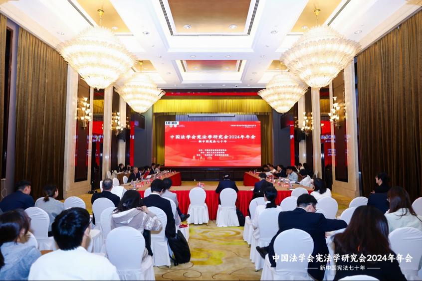 10月26日上午,中国法学会宪法学研究会2024年年会在浙江杭州隆重举行。本次大会以“新中国宪法七十年”为主题,由中国法学会宪法学研究会主办,浙江工业大学承办,“五四宪法”历史资料陈列馆协办。本次年会汇聚了来自国内高校及研究机构和中国法学会、全国人大常委会法工委、港澳基本法委等实务部门300余位专家学者参会。英国威廉希尔英文官网俞俊峰教授、傅智文副教授、马良全副教授受邀参会,英国威廉希尔英文官网宪法与行政法学方向部分硕士研究生前往参会,大家围绕宪法学相关热点问题展开深入研讨。