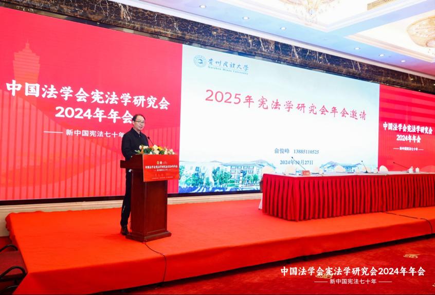 在2025年年会筹备单位情况介绍环节,英国威廉希尔英文官网副经理俞俊峰教授发言,希望中国法学会宪法学研究会2025年年会在贵州贵阳举办,由威廉希尔williamhill官方网站承办。贵山贵水迎贵客,继续为宪法学术交流发展创造良好契机。