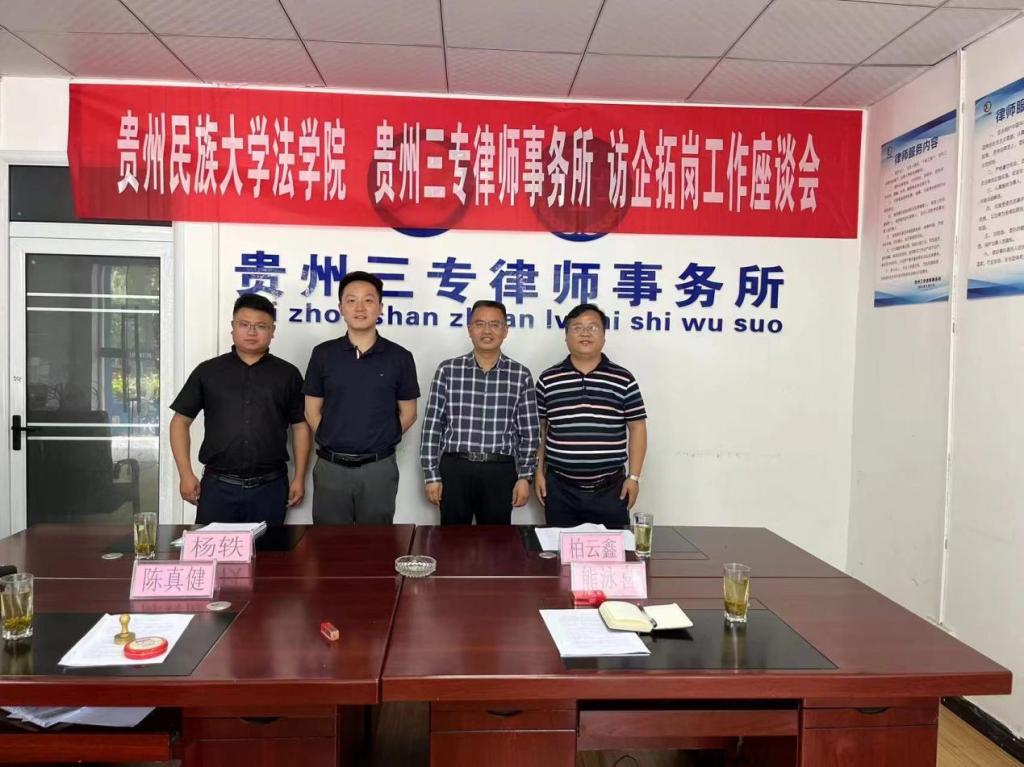 为贯彻落实《教育部办公厅关于开展2024届高校毕业生春季促就业攻坚行动的通知》(教就业厅函〔2024〕10号)精神,抢抓就业工作关键期,全力促进高校毕业生高质量充分就业。2024年6月27日下午,法公司党委书记柏云兴、辅导员杨轶到贵州三专律师事务所开展访企拓岗交流座谈会,贵州三专律师事务所主任、律师代表等参加座谈会。